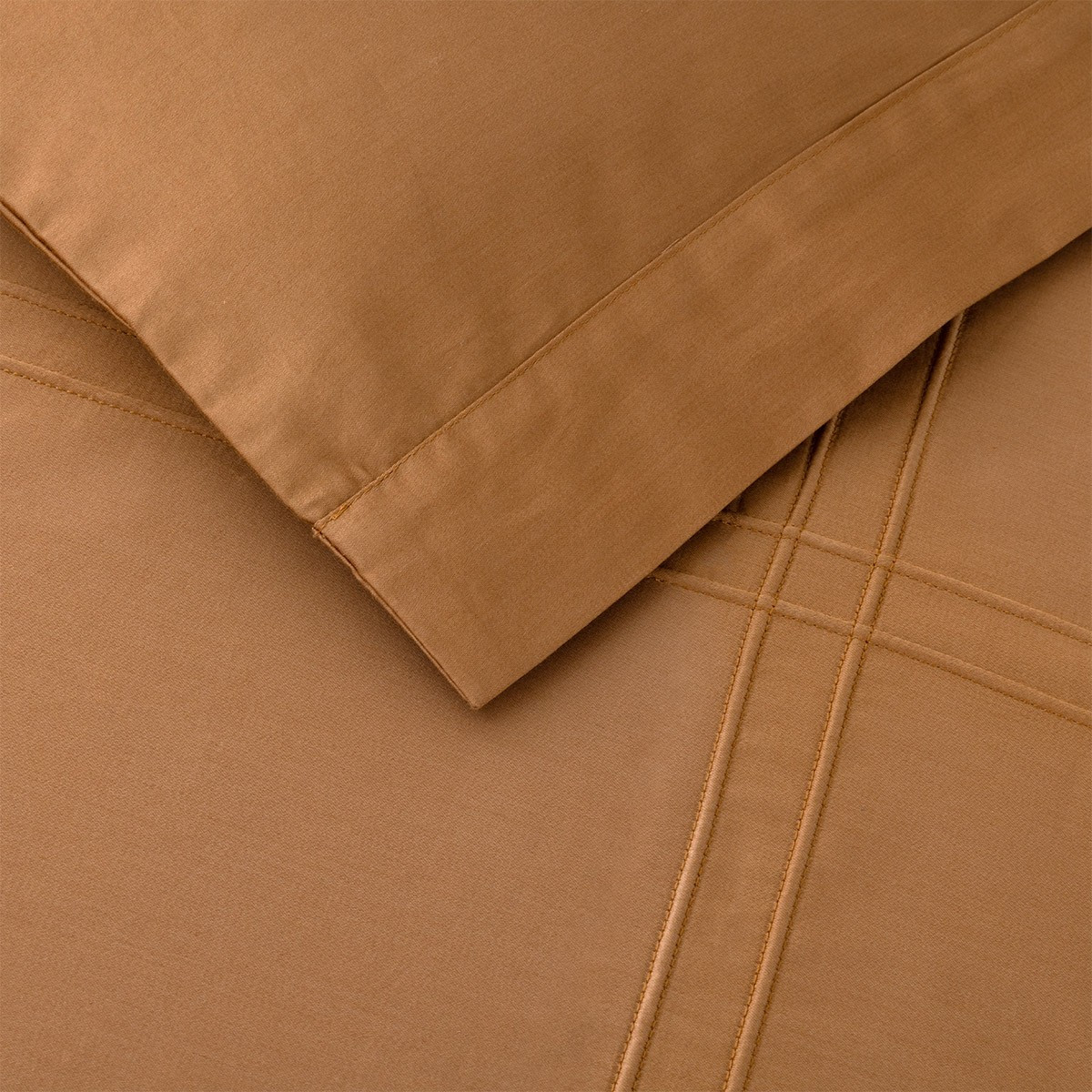 Пододеяльники и наволочки украшены двойной строчкой по периметру тон в тон и французским бордюром шириной 5см.