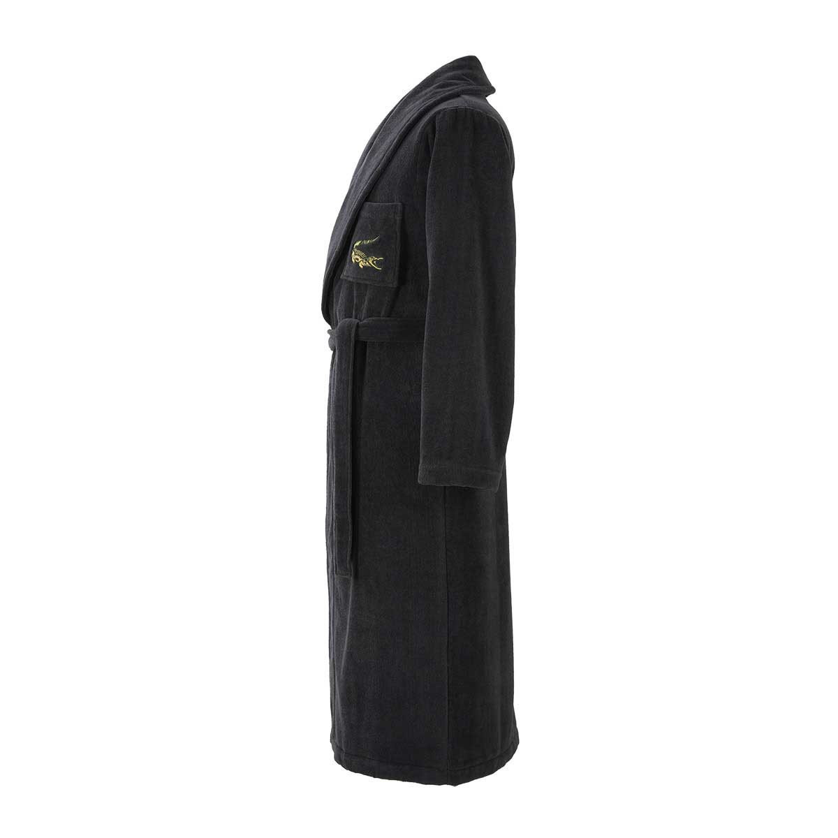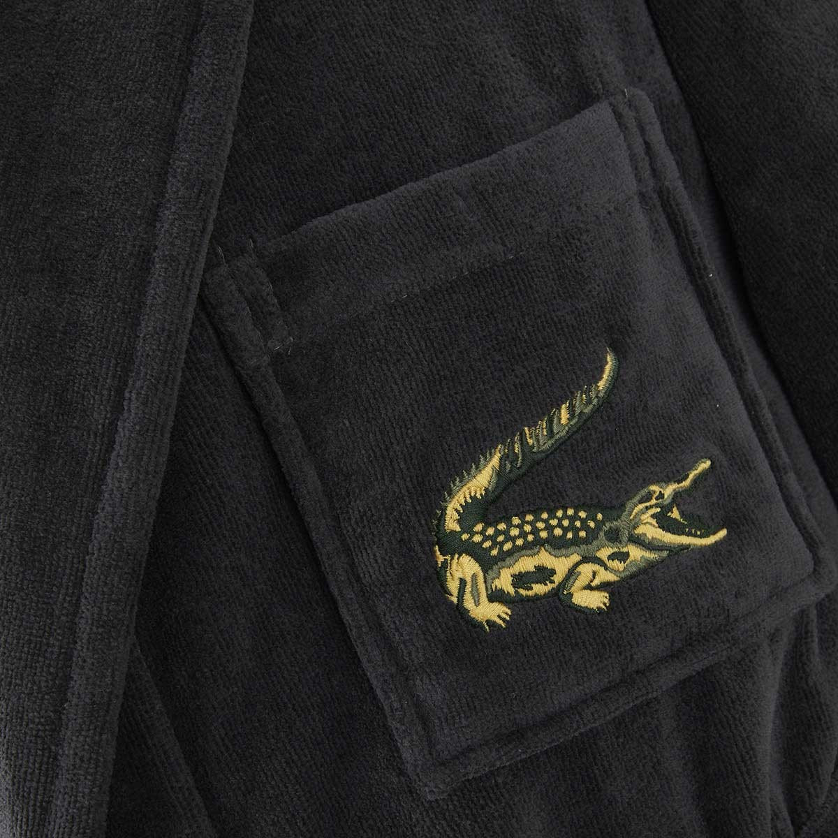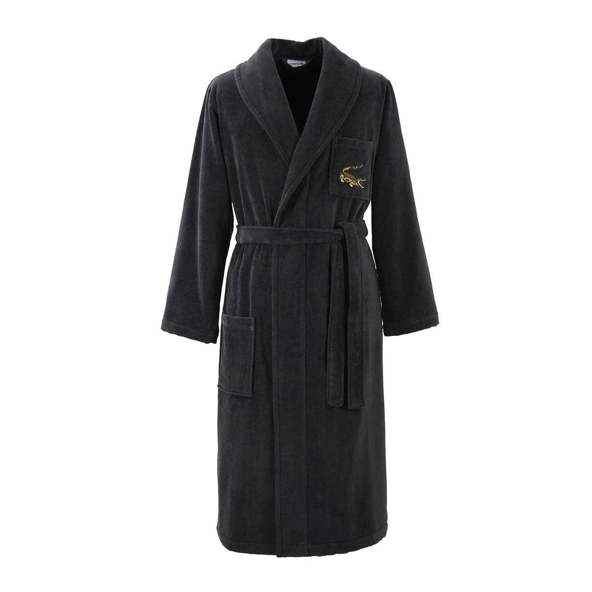 Халат украшен знаменитым вышитым крокодилом, которого почти сто лет назад нарисовал Робер Жорж, друг легендарного теннисиста Рене Лакоста.