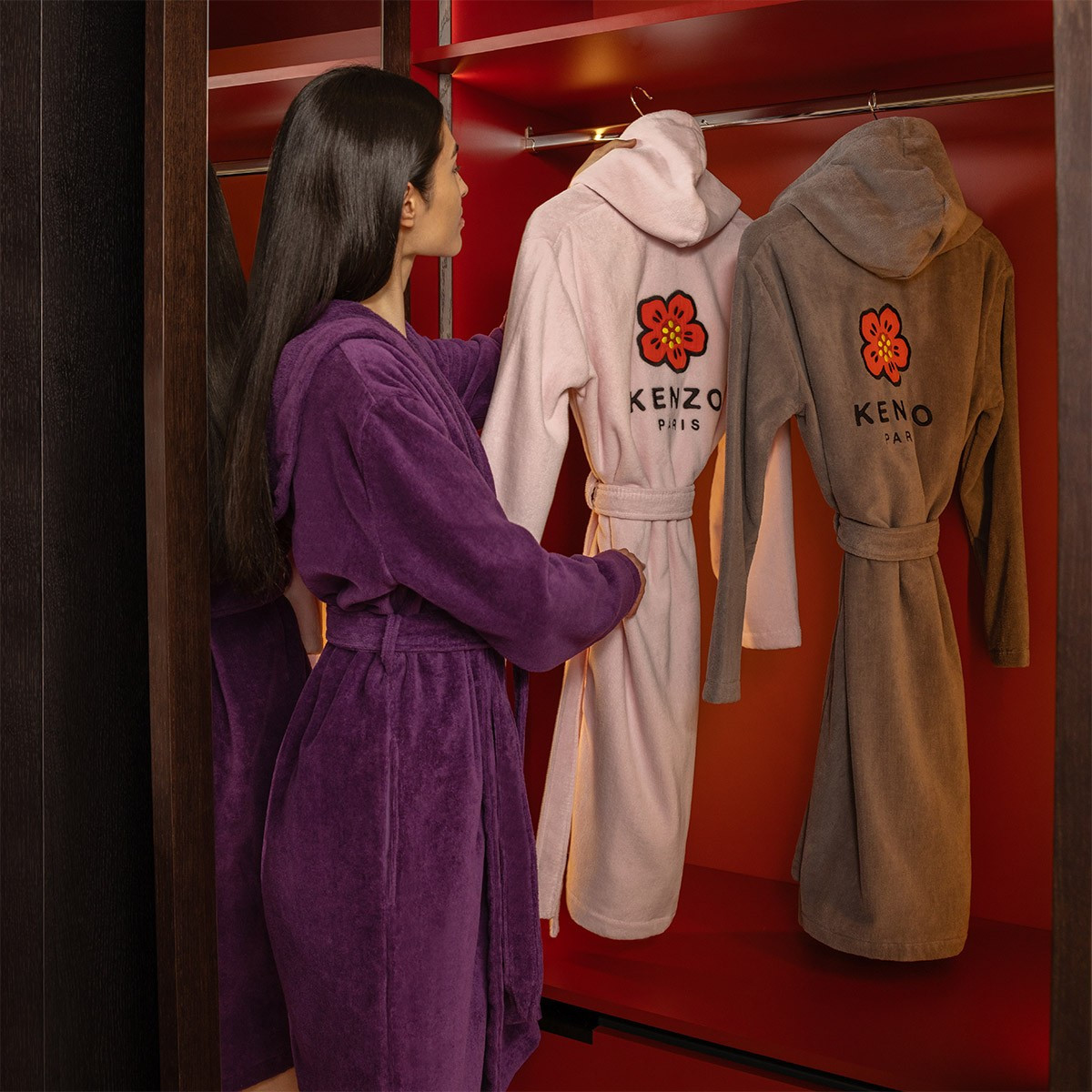 Халат Boke символизирует исторические коды бренда Kenzo с вышитым на спине символическим цветком Бока.
