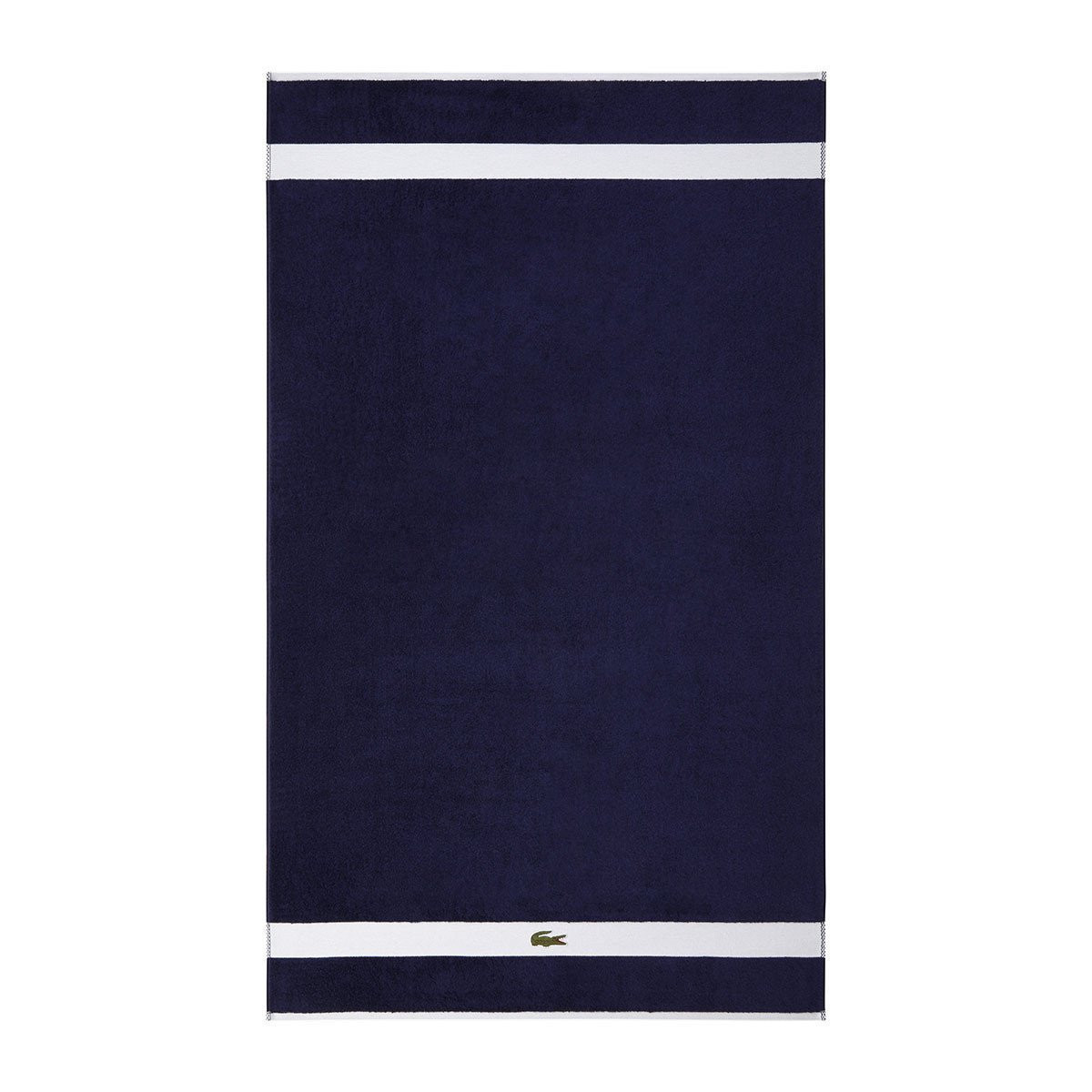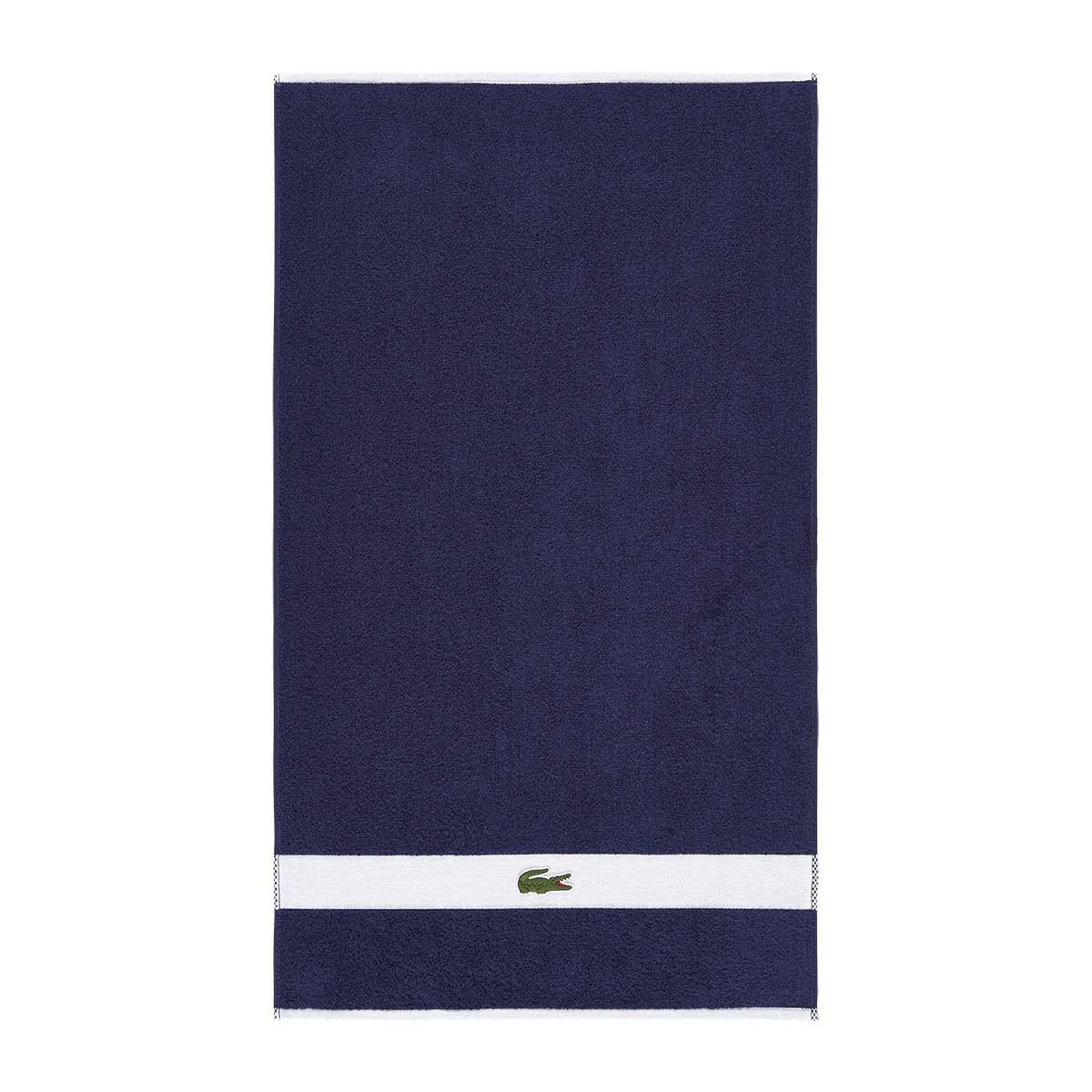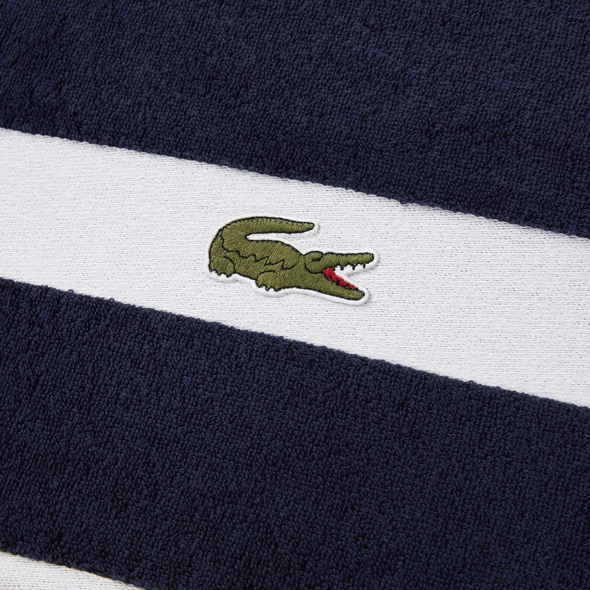 Контрастный бордюр полотенец украшен нашивкой с культовым крокодилом, которого почти сто лет назад нарисовал Робер Жорж, друг легендарного теннисиста Рене Лакоста.