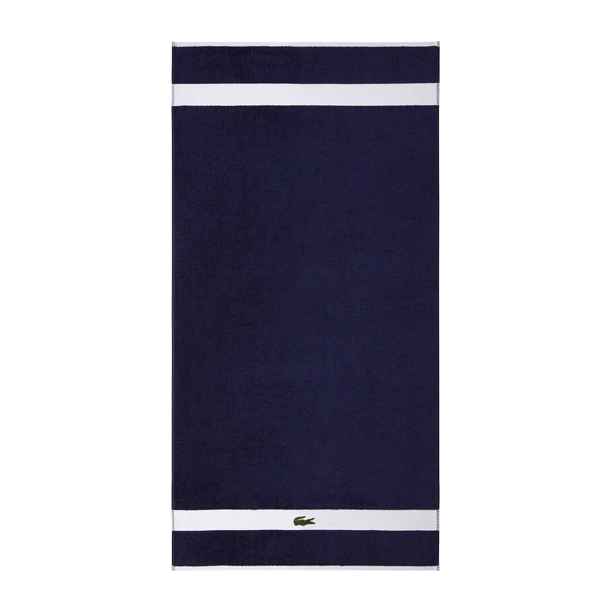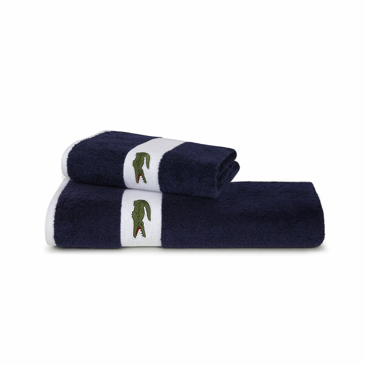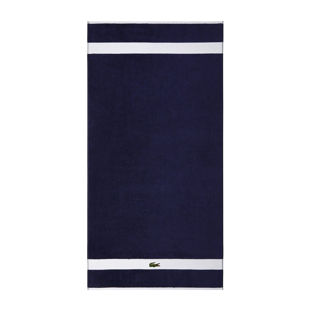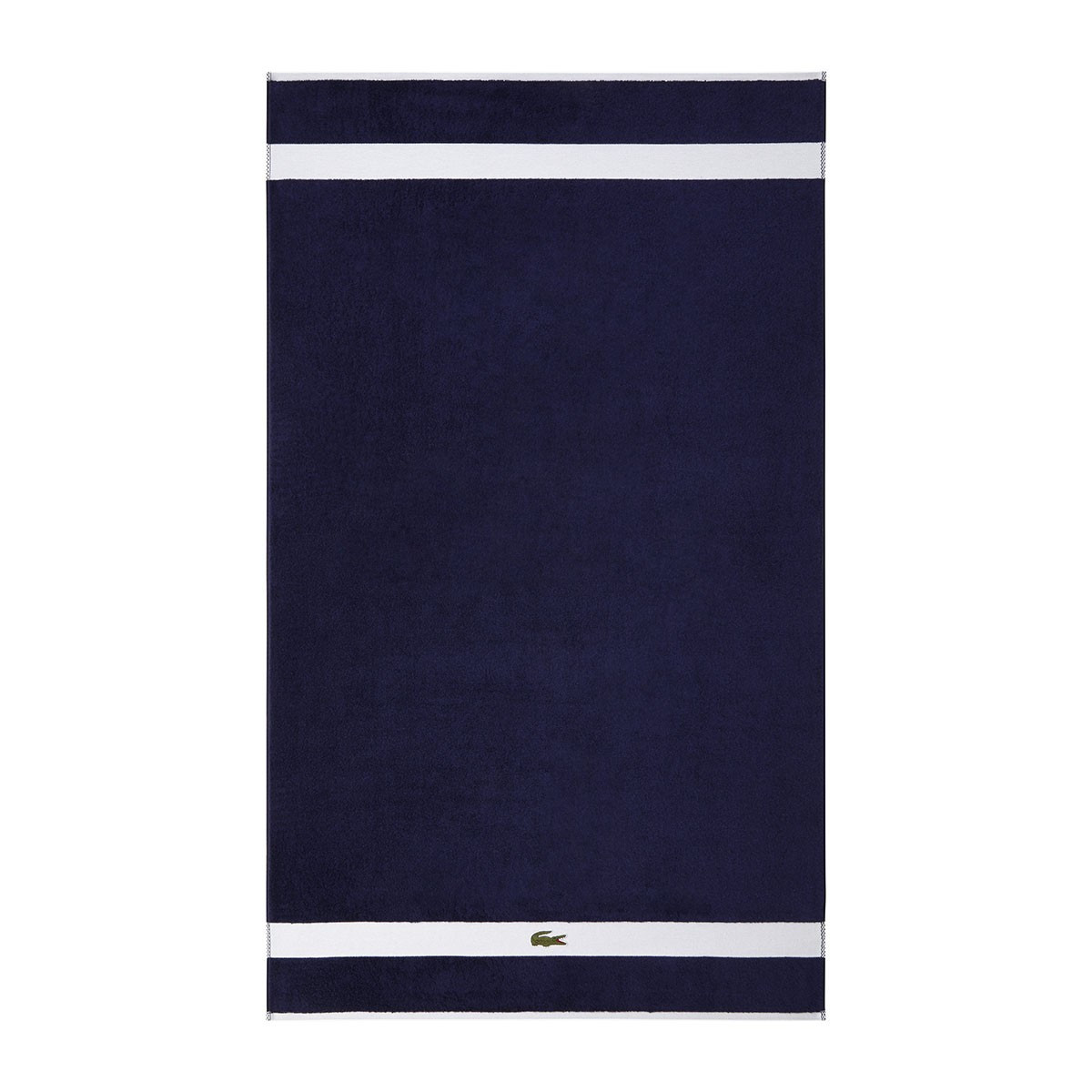 Контрастный бордюр полотенец украшен нашивкой с культовым крокодилом, которого почти сто лет назад нарисовал Робер Жорж, друг легендарного теннисиста Рене Лакоста.