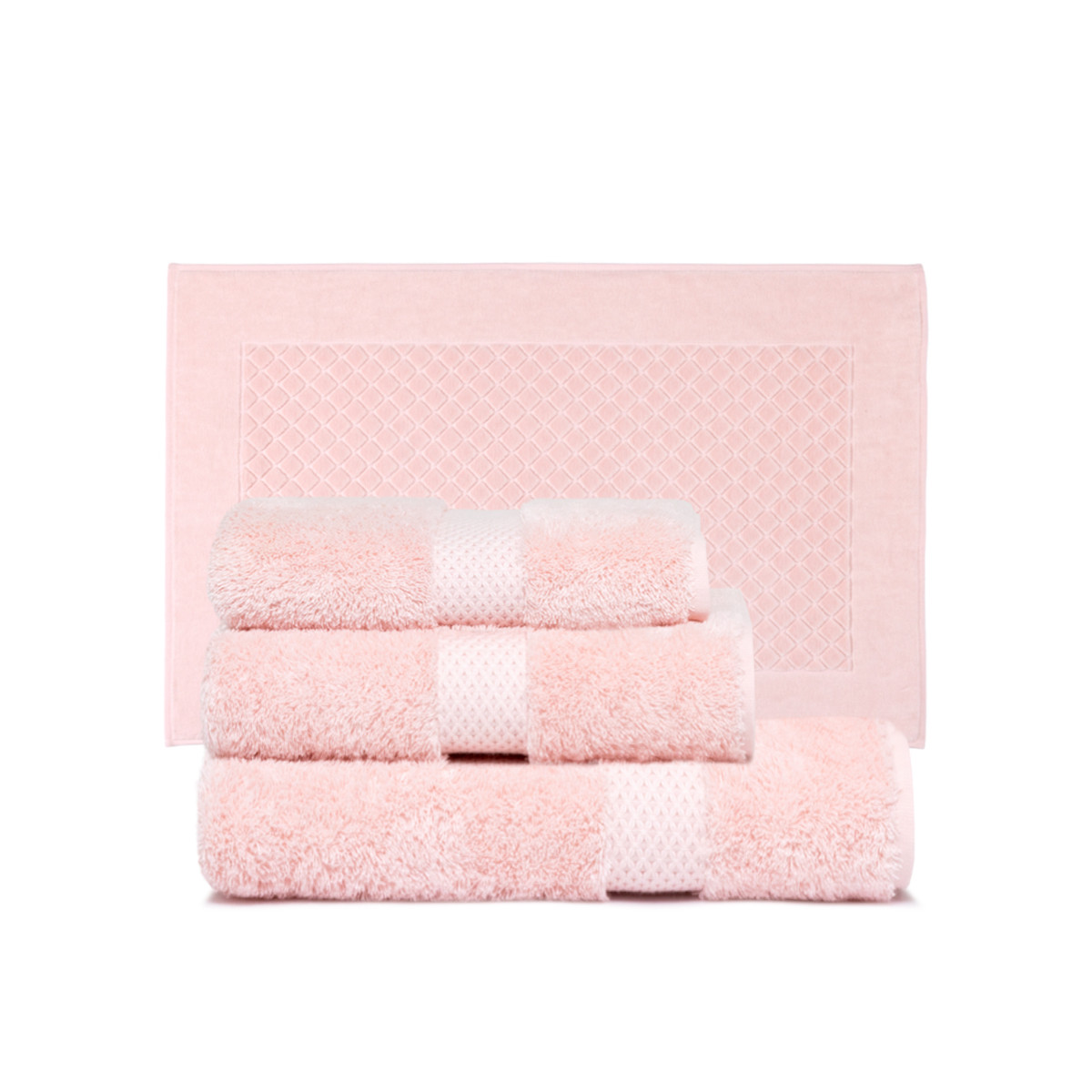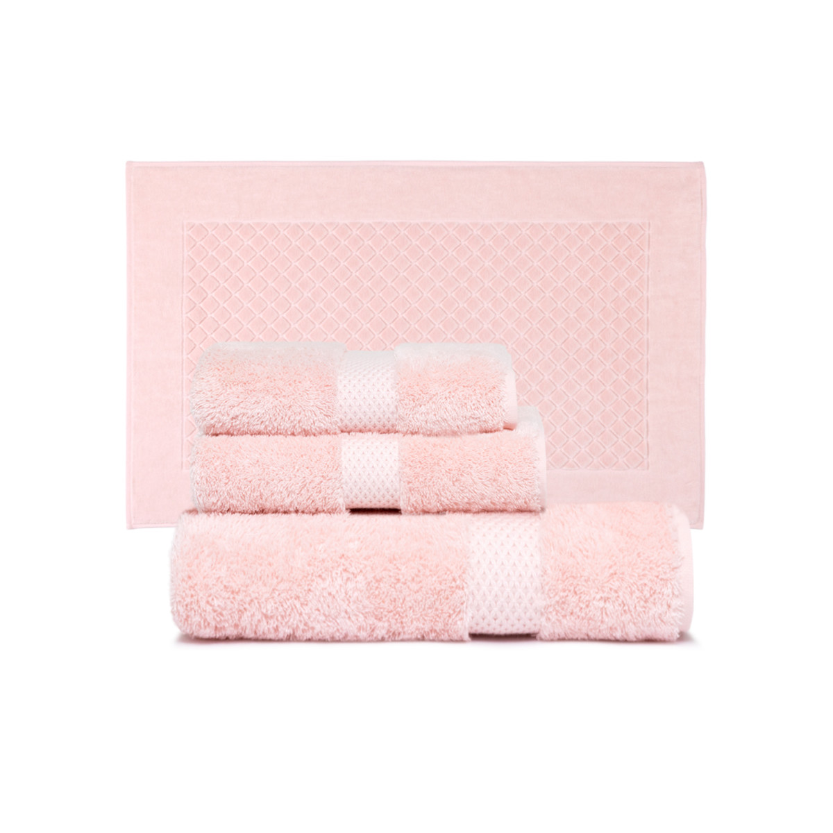 Коллекция полотенец Etoile (Этуаль) сопровождается облегченными халатами Etoile тон-в-тон (450гр/м2) и плотным велюровым ковром для ванной Etoile тон-в-тон (870гр/м2)