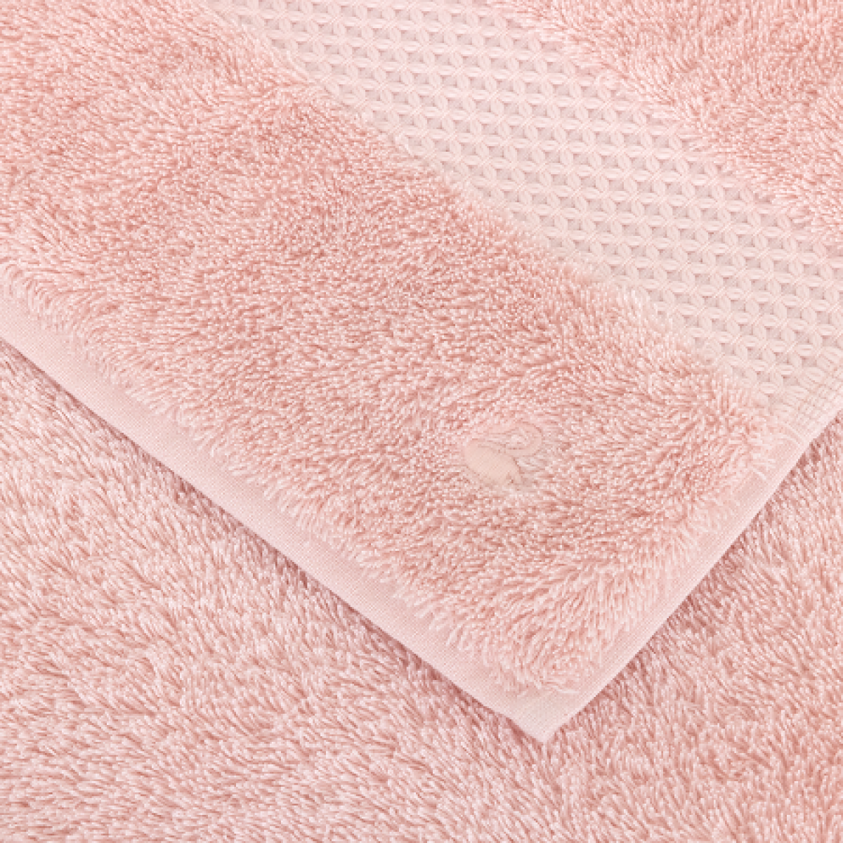 В левом нижнем углу каждого полотенца фирменная вышивка тон в тон логотипа «Yves Delorme» - плывущего лебедя.