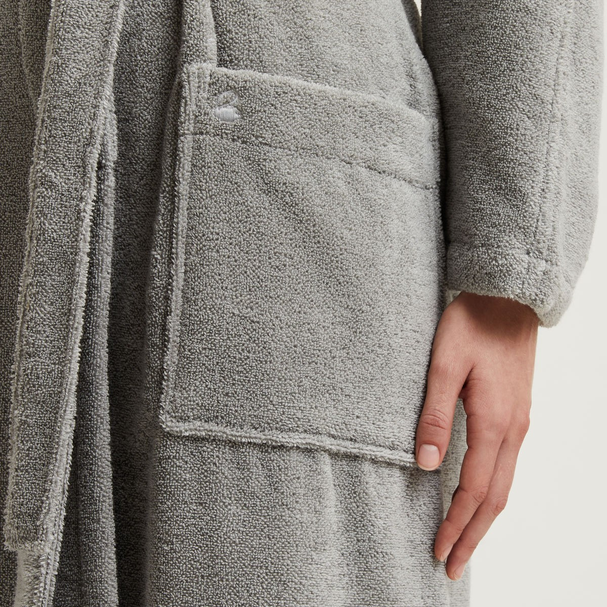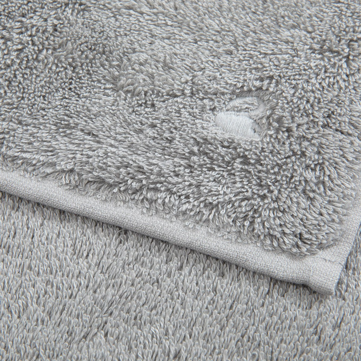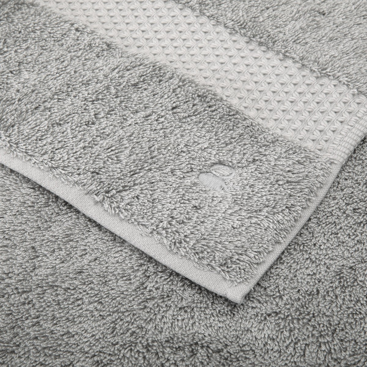 В левом нижнем углу каждого полотенца фирменная вышивка тон в тон логотипа «Yves Delorme» - плывущего лебедя.