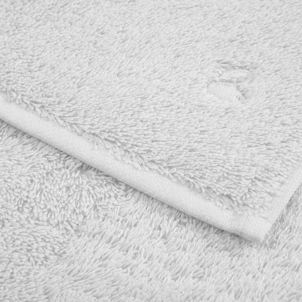 В левом нижнем углу каждого полотенца фирменная вышивка тон в тон логотипа «Yves Delorme» - плывущего лебедя.