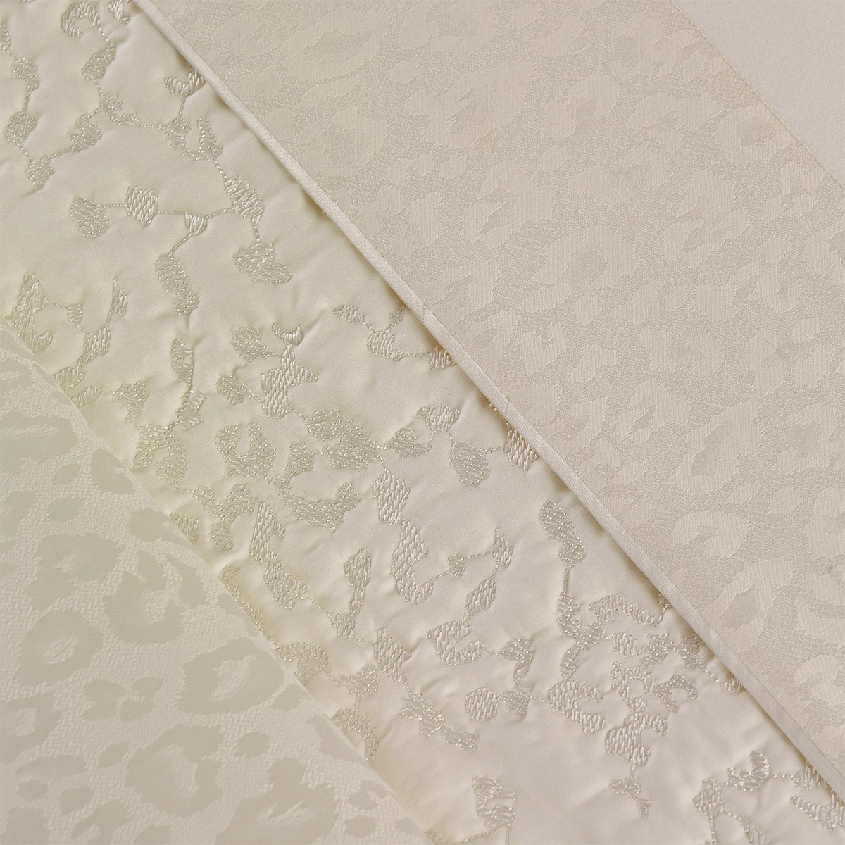 Leopard (Леопард) – анималистический дизайн от Yves Delorme Paris, восходящий к геральдике французских королей. Леопард появился на гербах французских королей со средних веков, символизируя храбрость и удачу. Леопардовая расцветка стала символом удачи и достатка. Yves Delorme Paris, храня традиции французского исторического наследия, по новому интерпретирует леопардовый узор в мягком молочном оттенке искрящегося сатина.