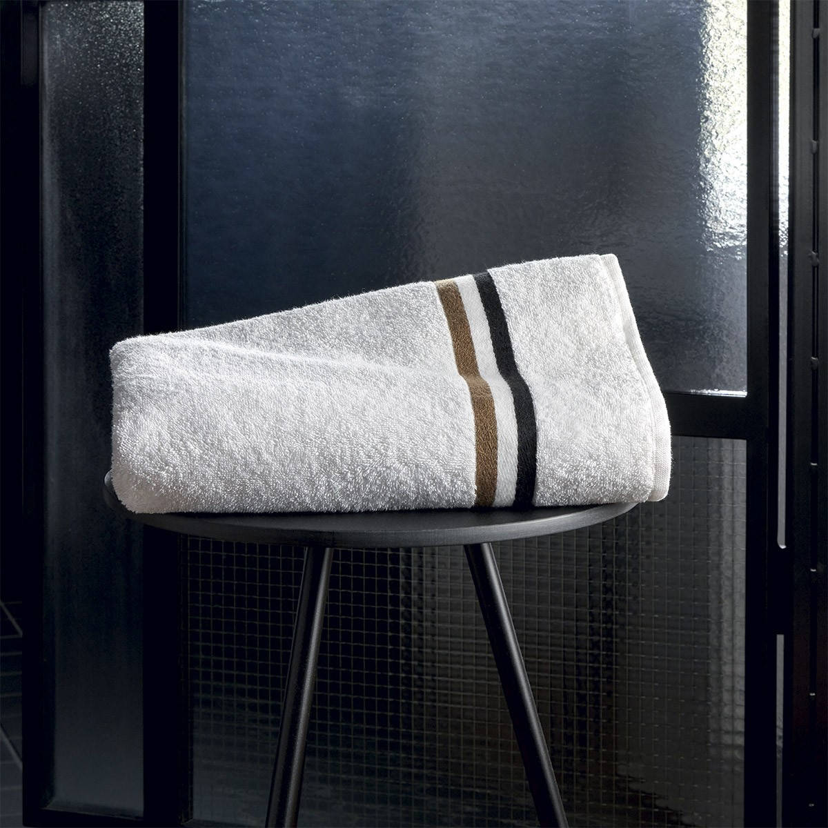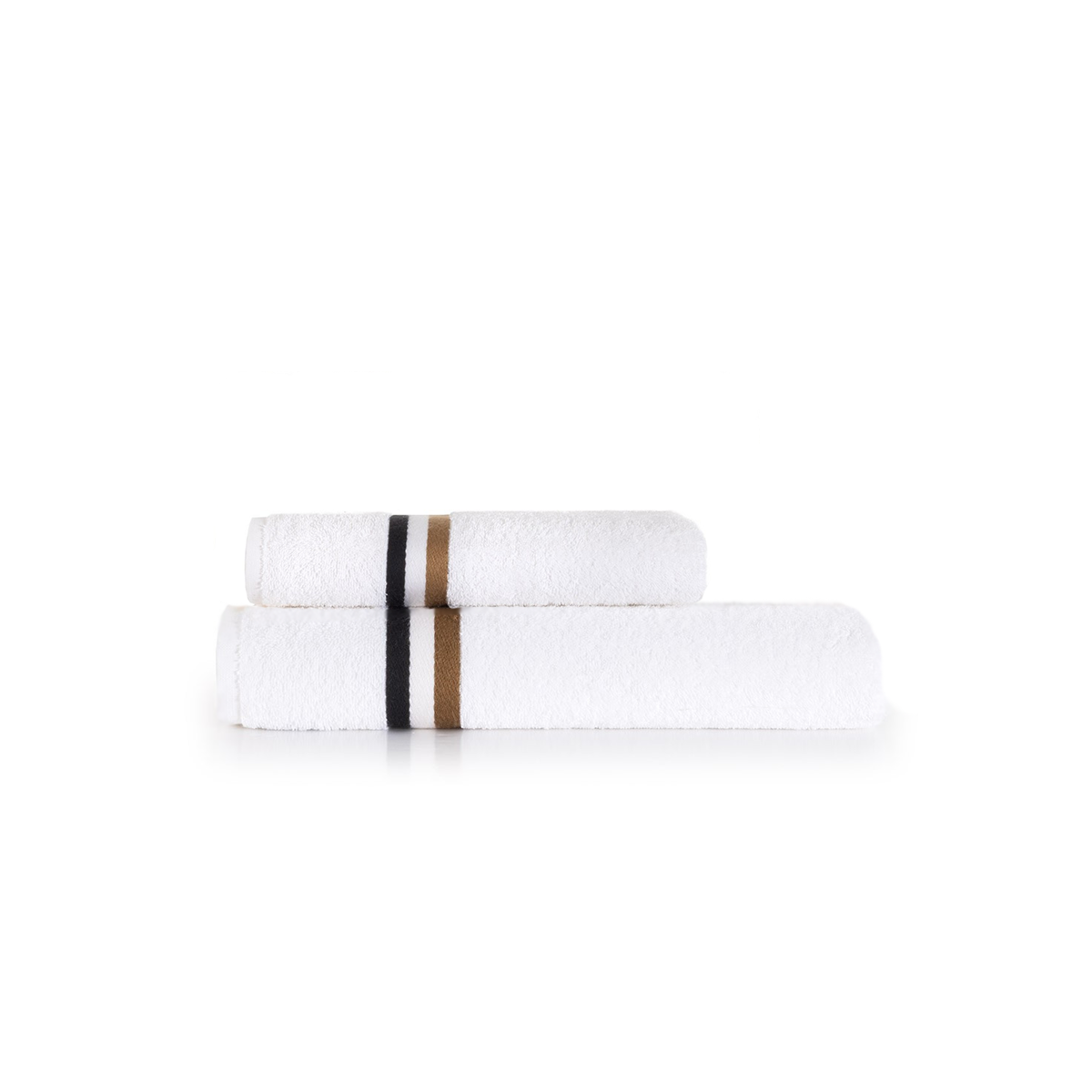 Жаккардовый трехцветный бордюр на каждом полотенце в канонических цветах BOSS.