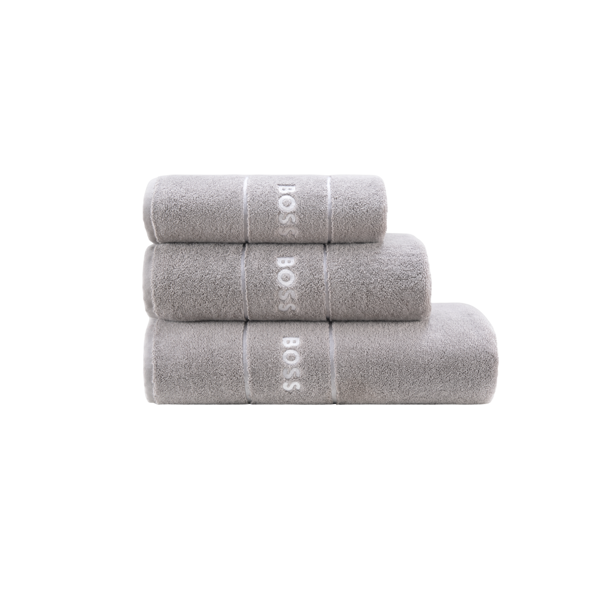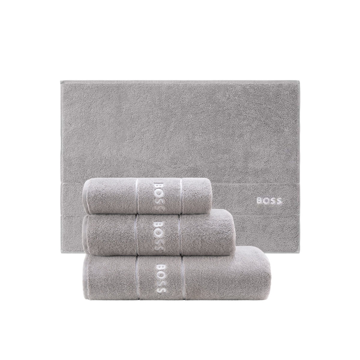 Полотенца Plain от BOSS доступны как отдельно, так и комплектом из 3х полотенец, с ковром для ванной или без, по специальной цене.