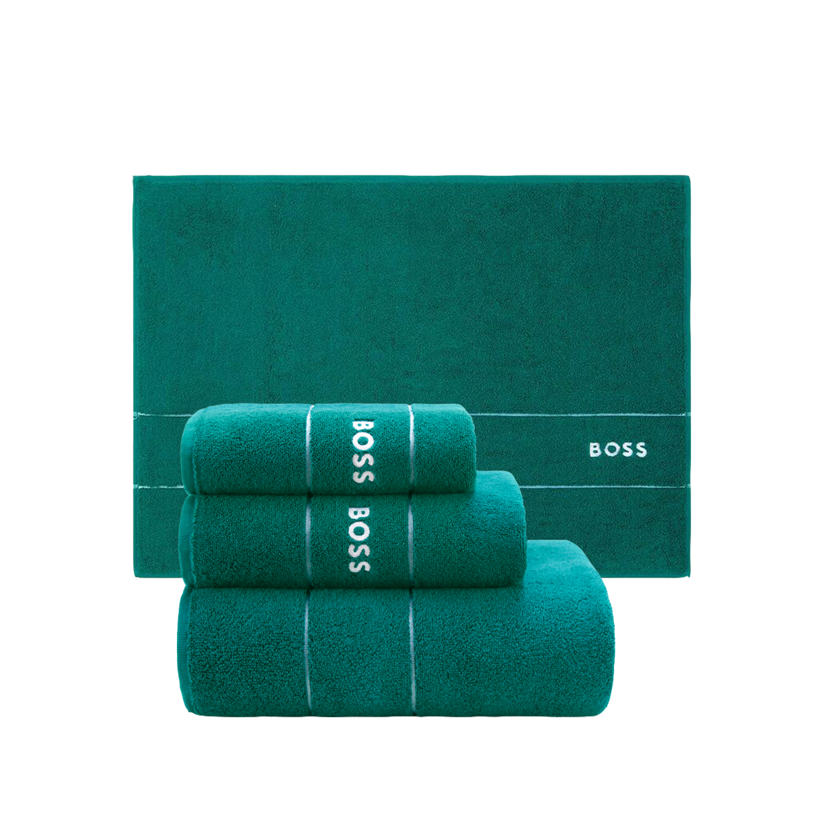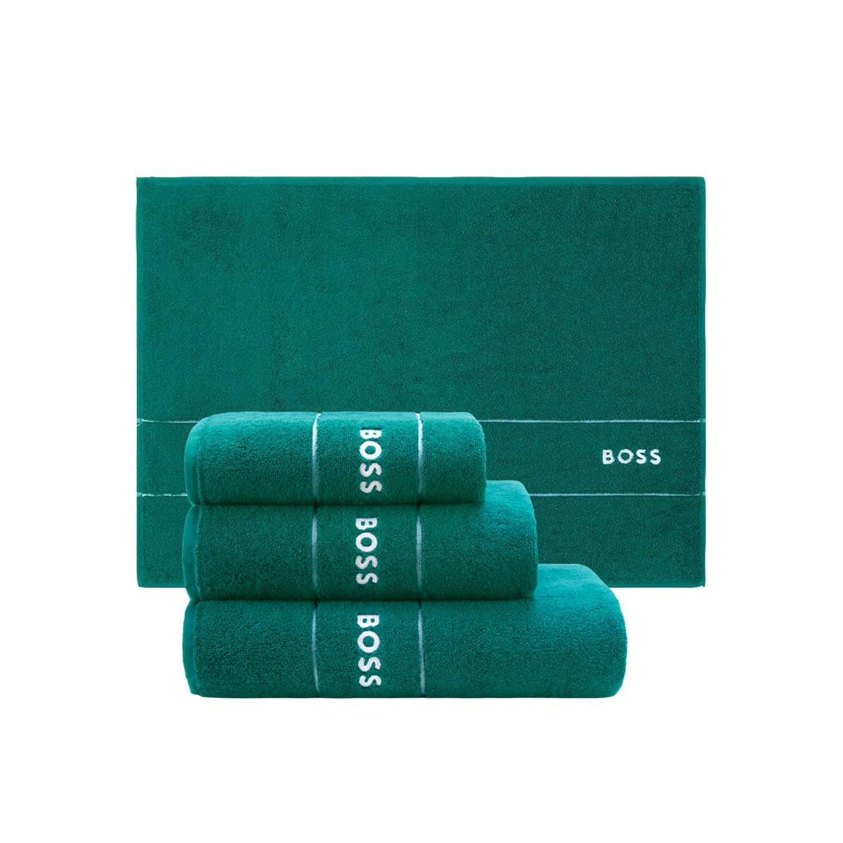 Полотенца Plain от BOSS доступны как отдельно, так и комплектом из 3х полотенец, с ковром для ванной или без, по специальной цене.