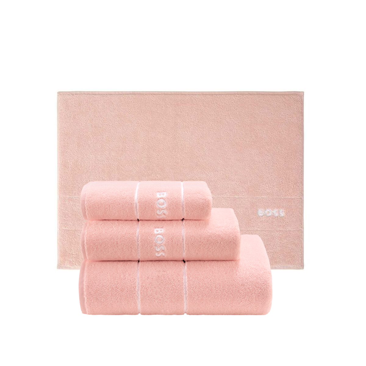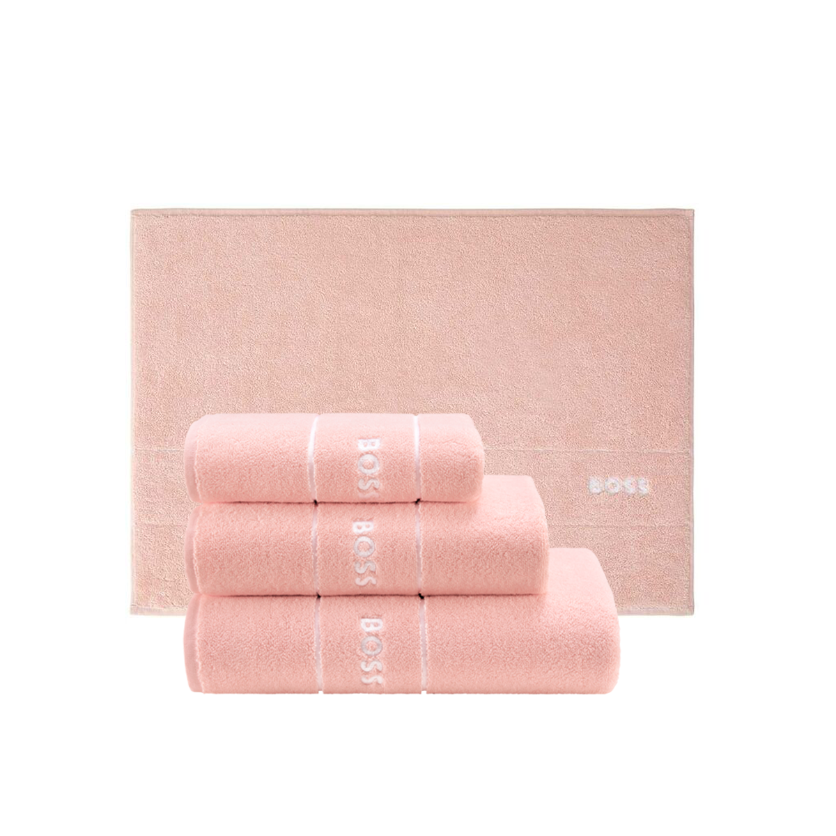 Полотенца Plain от BOSS доступны как отдельно, так и комплектом из 3х полотенец, с ковром для ванной или без, по специальной цене.