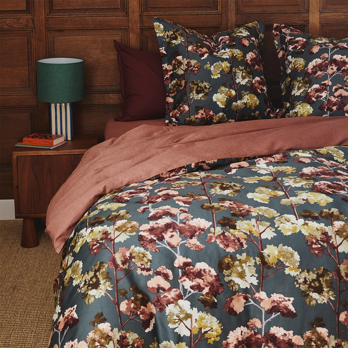 Лунный свет льется сквозь деревья, переливающиеся гранатовыми, абсентовыми и хаки оттенками.