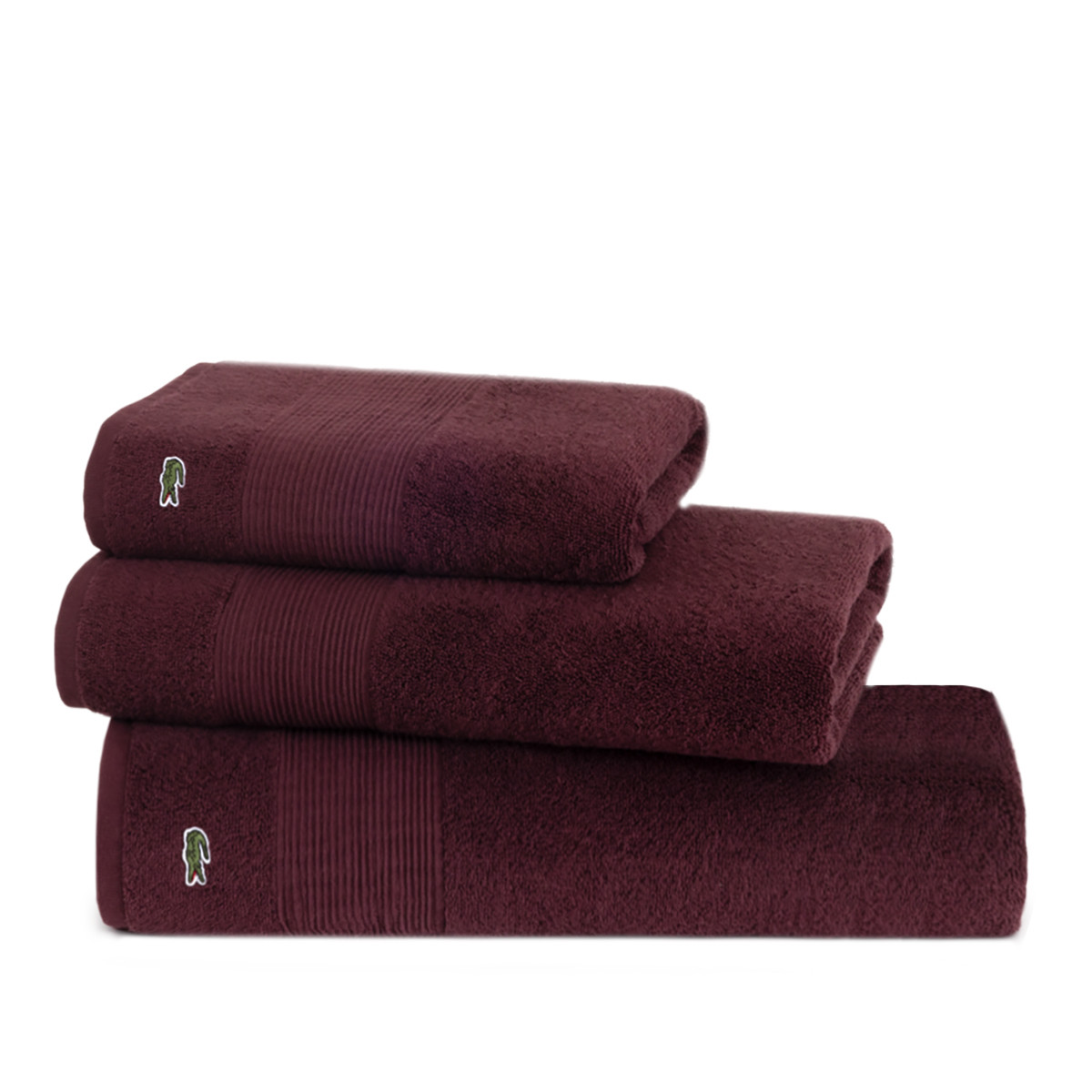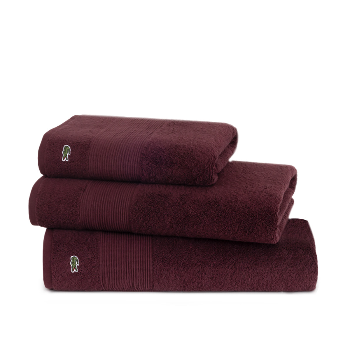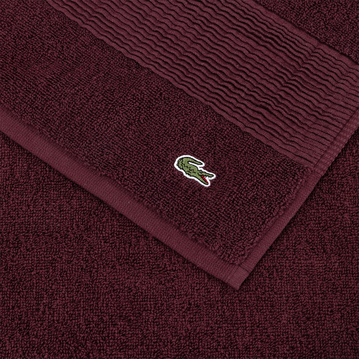 Безупречный широкий многоуровневый бордюр от Лакост, позволяющий держать форму и композицию полотенца даже после многократных стирок.
