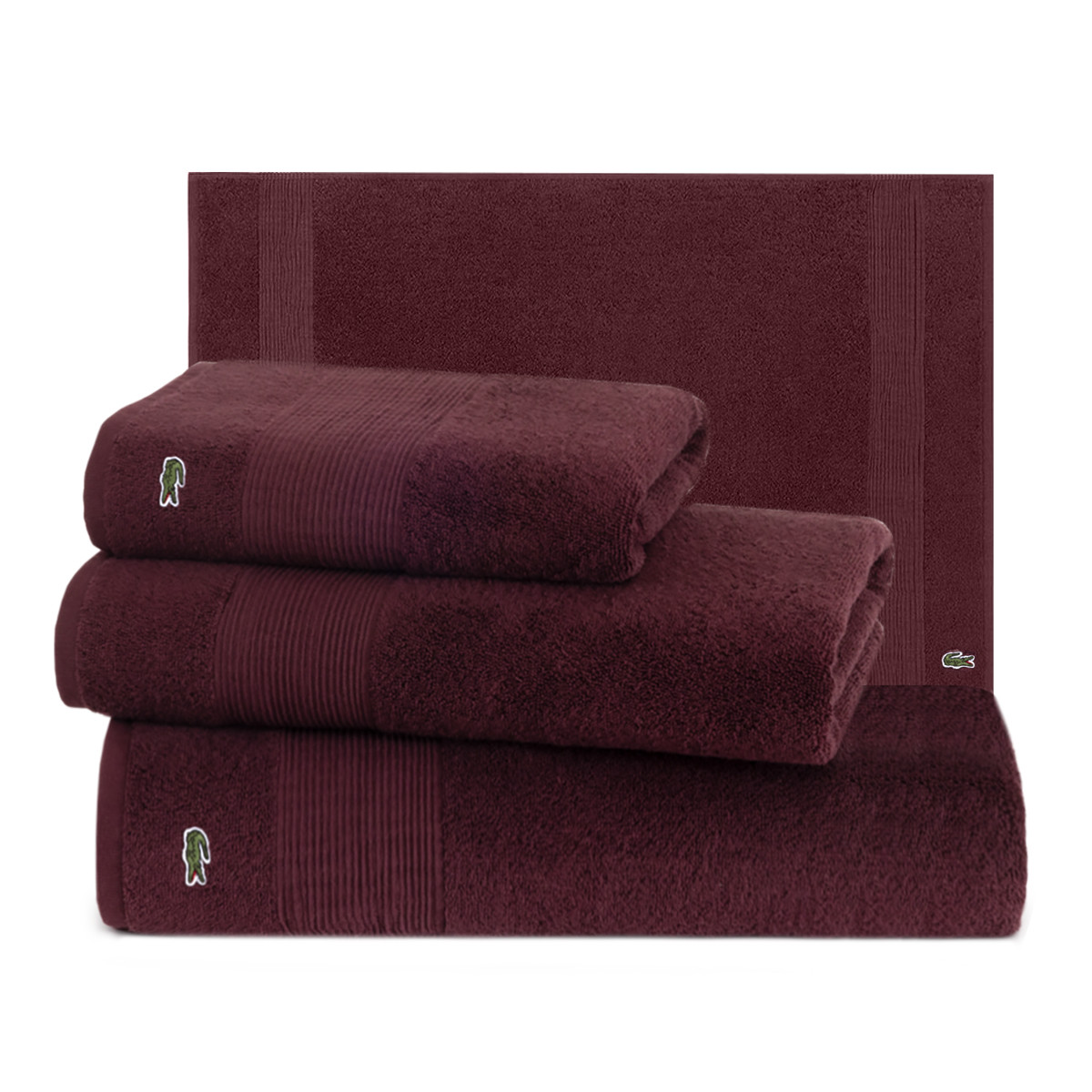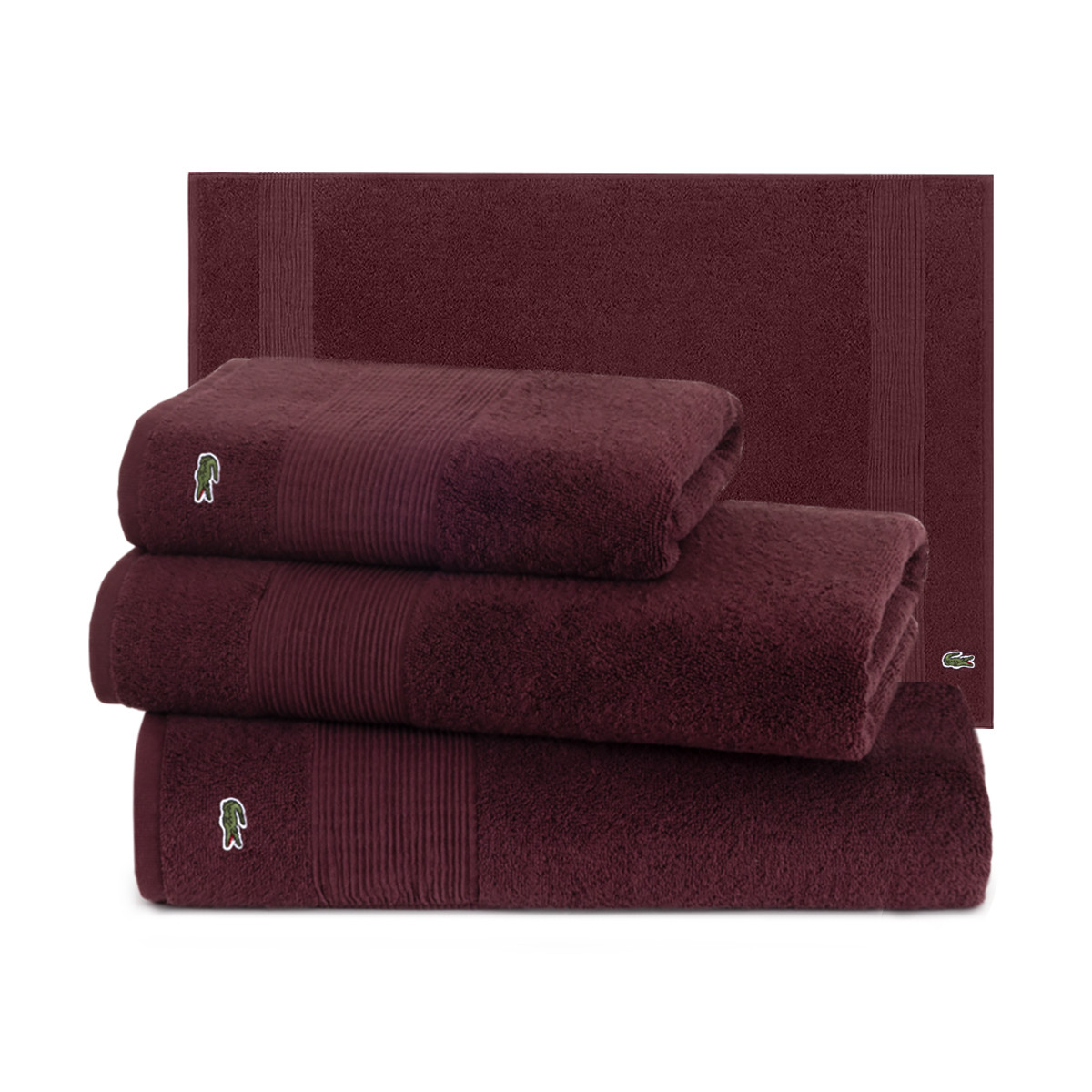 Полотенца Super Lacoste доступны как отдельно, так и комплектом из 3х полотенец, с ковром для ванной или без, по специальной цене.
