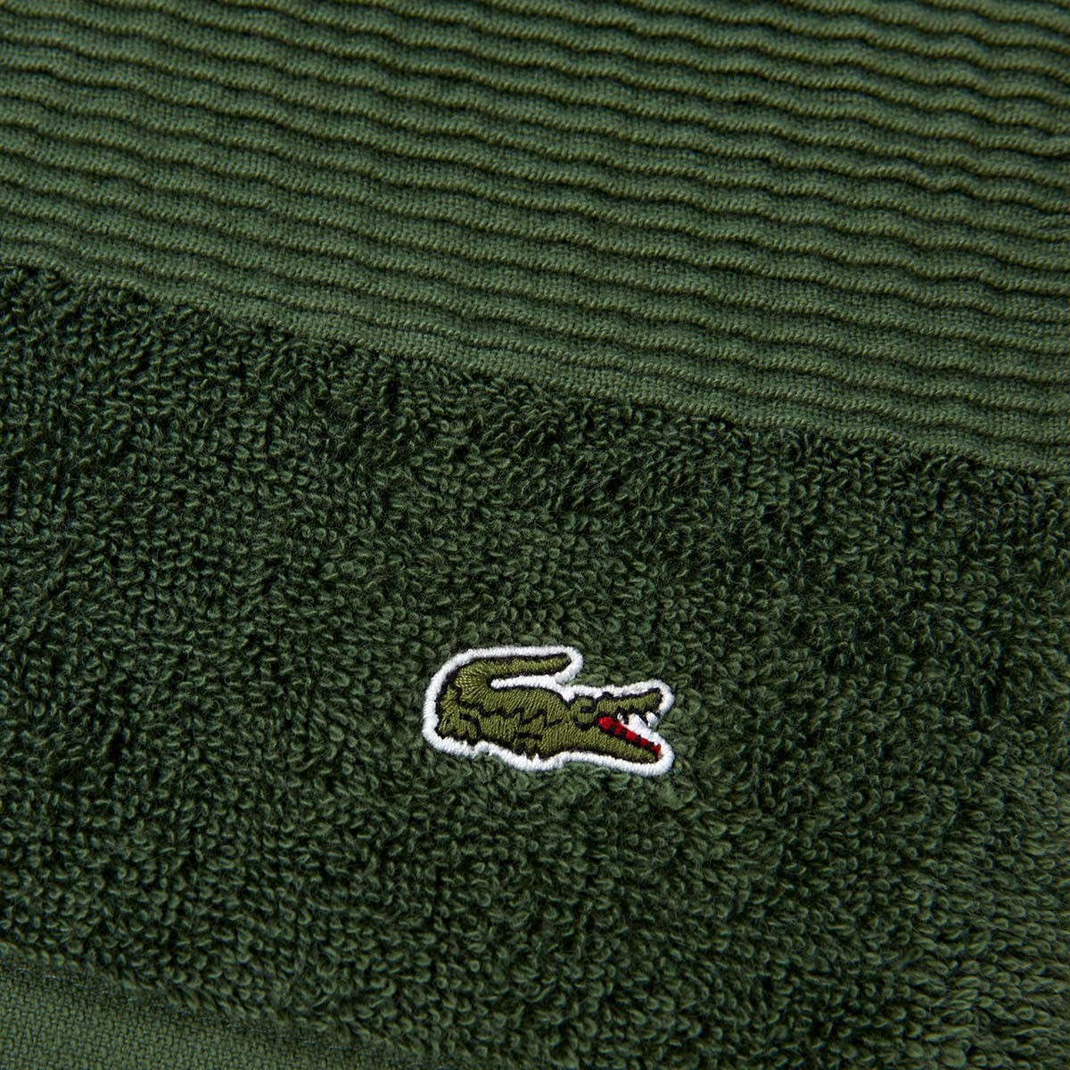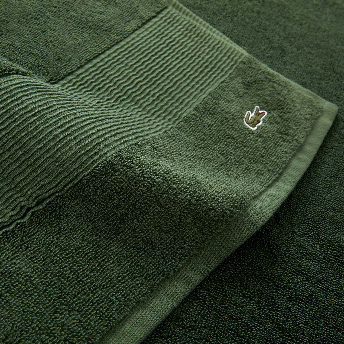 Безупречный широкий многоуровневый бордюр от Lacoste, позволяющий держать форму и композицию полотенца даже после многократных стирок.
