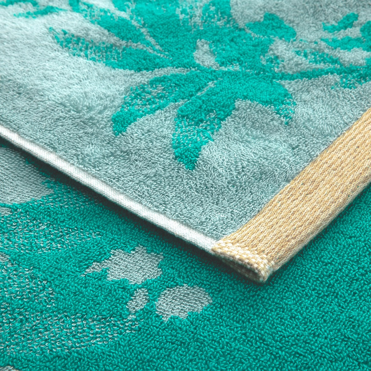 Жаккардовый дизайн в технике «позитив – негатив», где фон и рисунок противоположны по цвету с каждой стороны полотенца.
