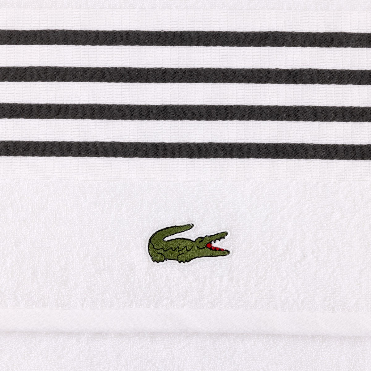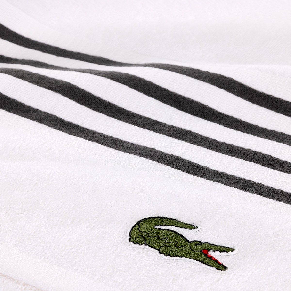 Полотенце персонализировано нашивкой с культовым крокодилом, которого почти сто лет назад нарисовал Робер Жорж, друг легендарного теннисиста Рене Лакоста.