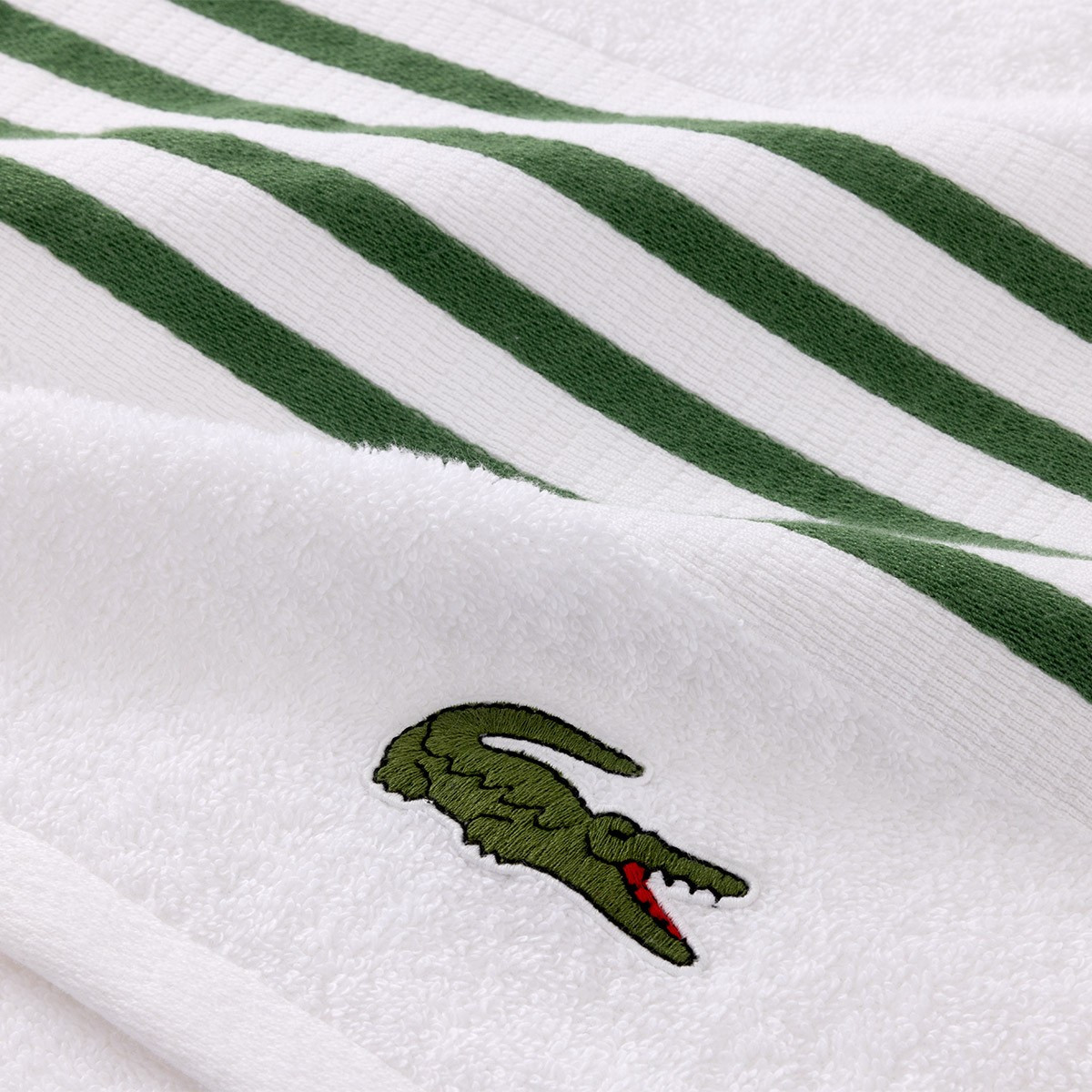 Полотенце персонализировано нашивкой с культовым крокодилом, которого почти сто лет назад нарисовал Робер Жорж, друг легендарного теннисиста Рене Лакоста.