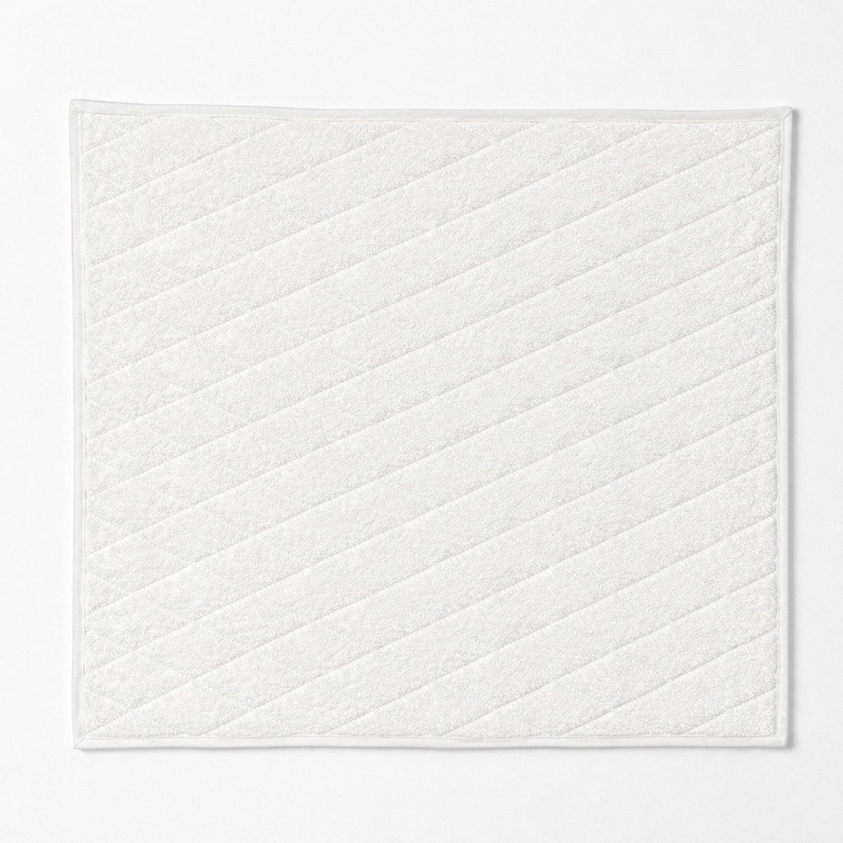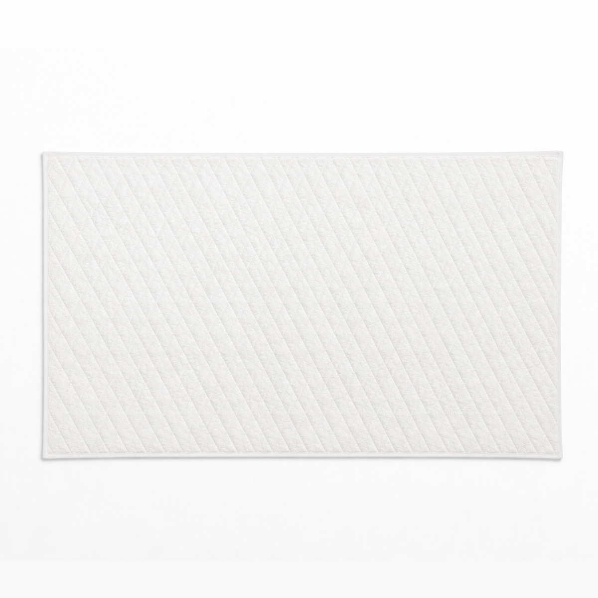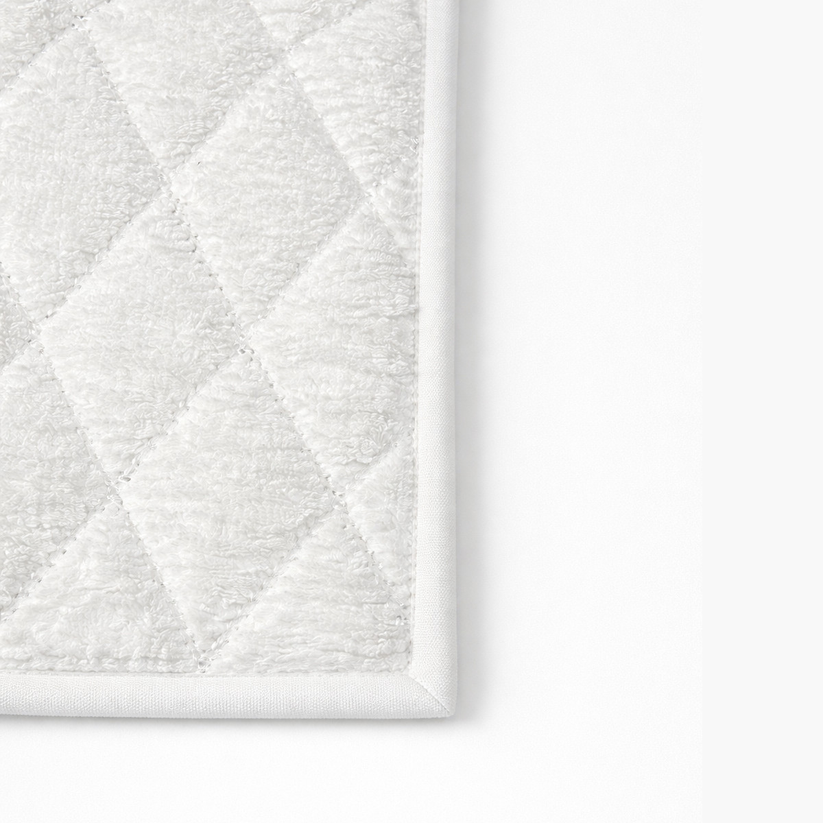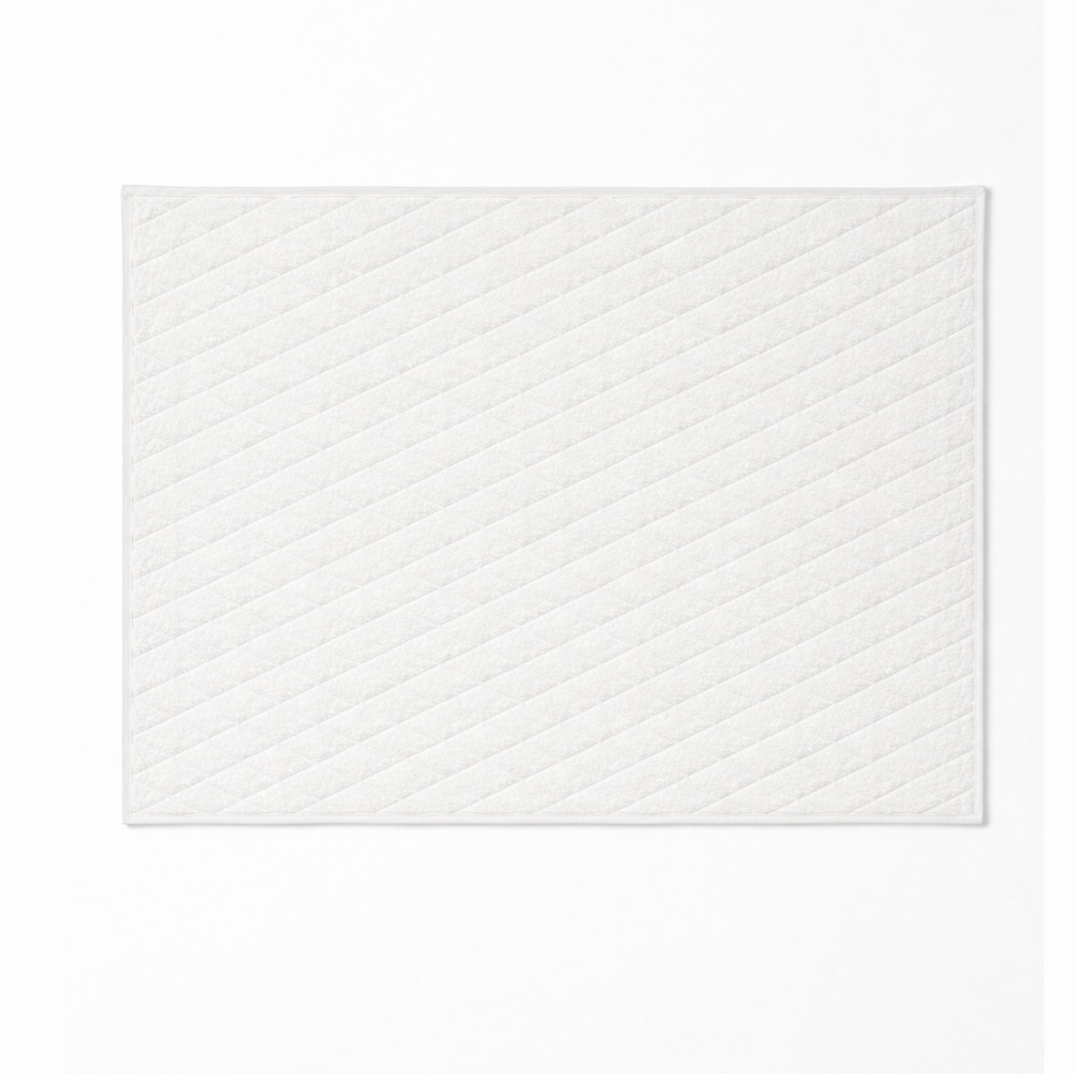 Вышивка ковриков для ванной Diademe (Диадема) классическим ромбом выполнена во Франции комбинацией серебряной и небеленой нитей по двухслойному махровому полотну высокой плотности. Края отстрочены плотной хлопковой лентой.