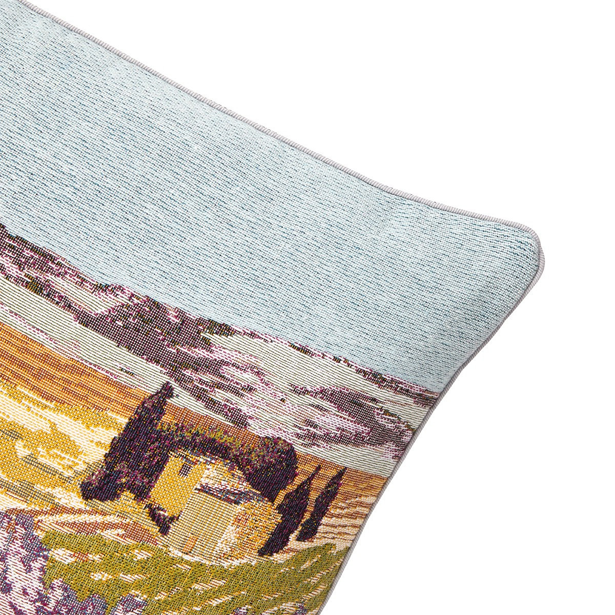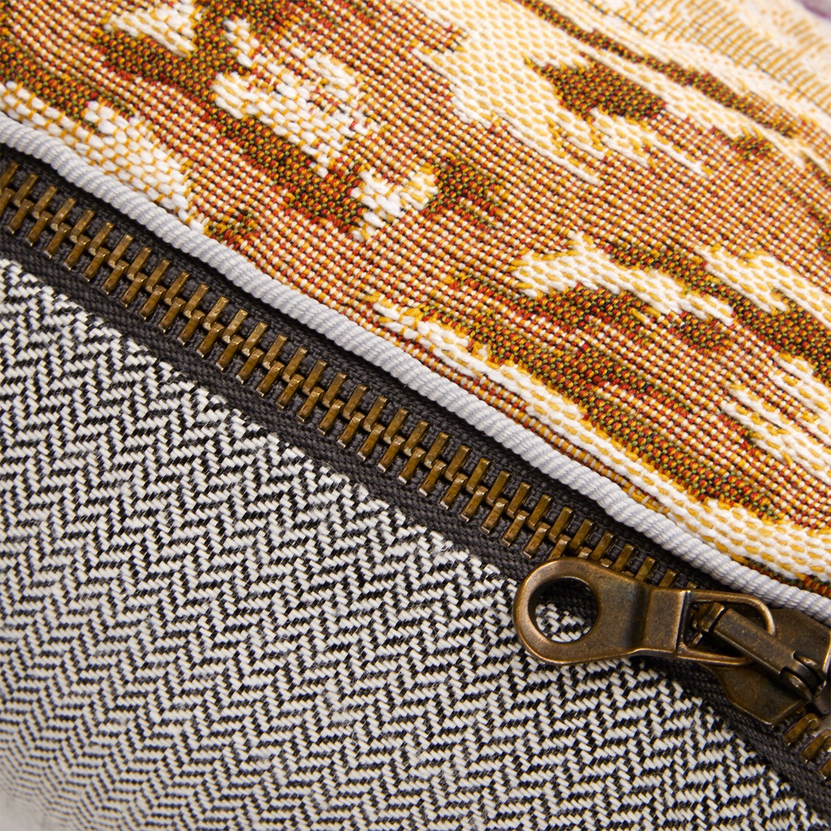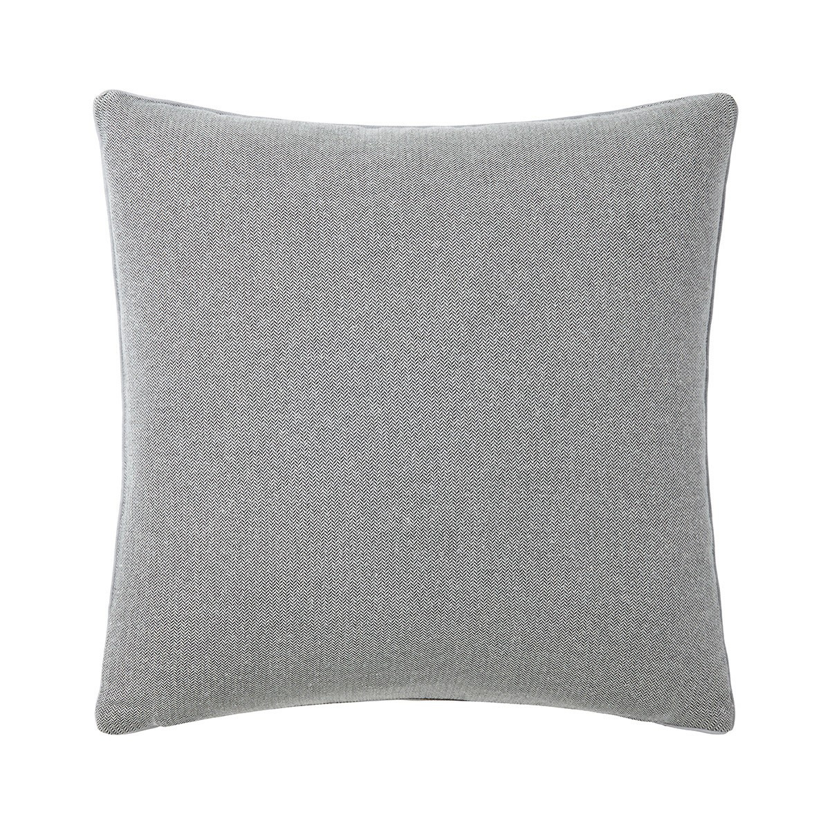 Оборотная сторона подушки выполнена в гобеленовой ткани серого оттенка с классическим V-образным орнаментом Herringbone.