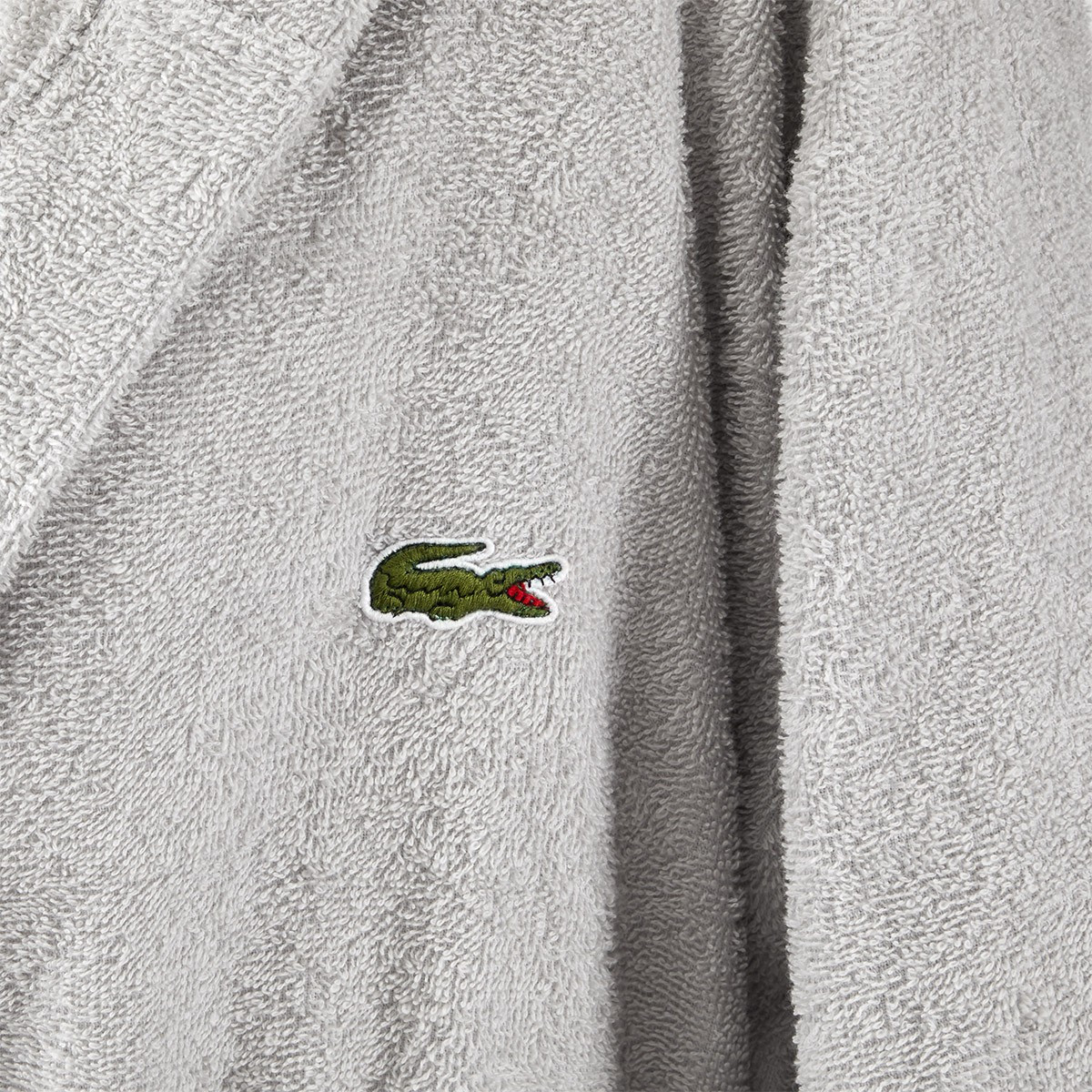 Халат персонализирован нашивкой с культовым крокодилом, которого почти сто лет назад нарисовал Робер Жорж, друг легендарного теннисиста Рене Лакоста.