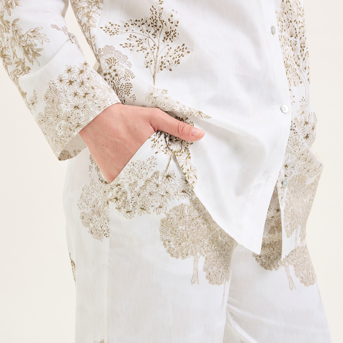 Laurence Tavernier пересматривает классический французский дизайн и оставляет исключительно парковый орнамент – акварельный пейзаж в нежных золотистых и бронзовых оттенках, исторически символизирующих во Франции роскошь и богатство.