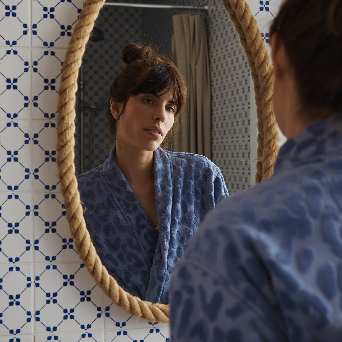 Халат сопровождается полотенцами в том же дизайне.