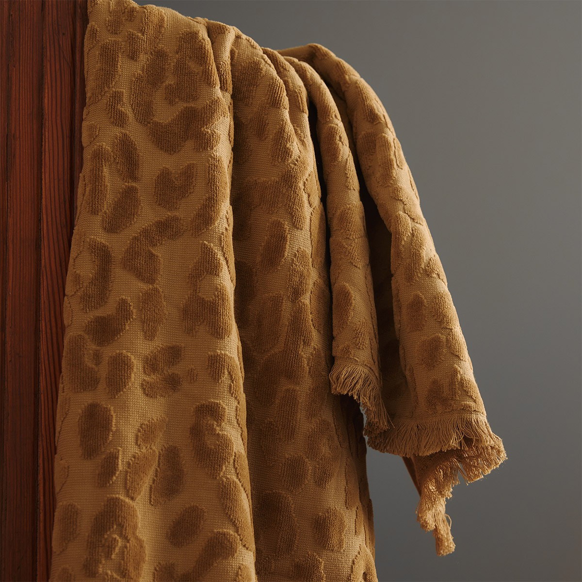 Полотенца Vittorio выполнены в мягчайшем хлопковом велюре, с переливчатой фактурой и смелым леопардовым узором.